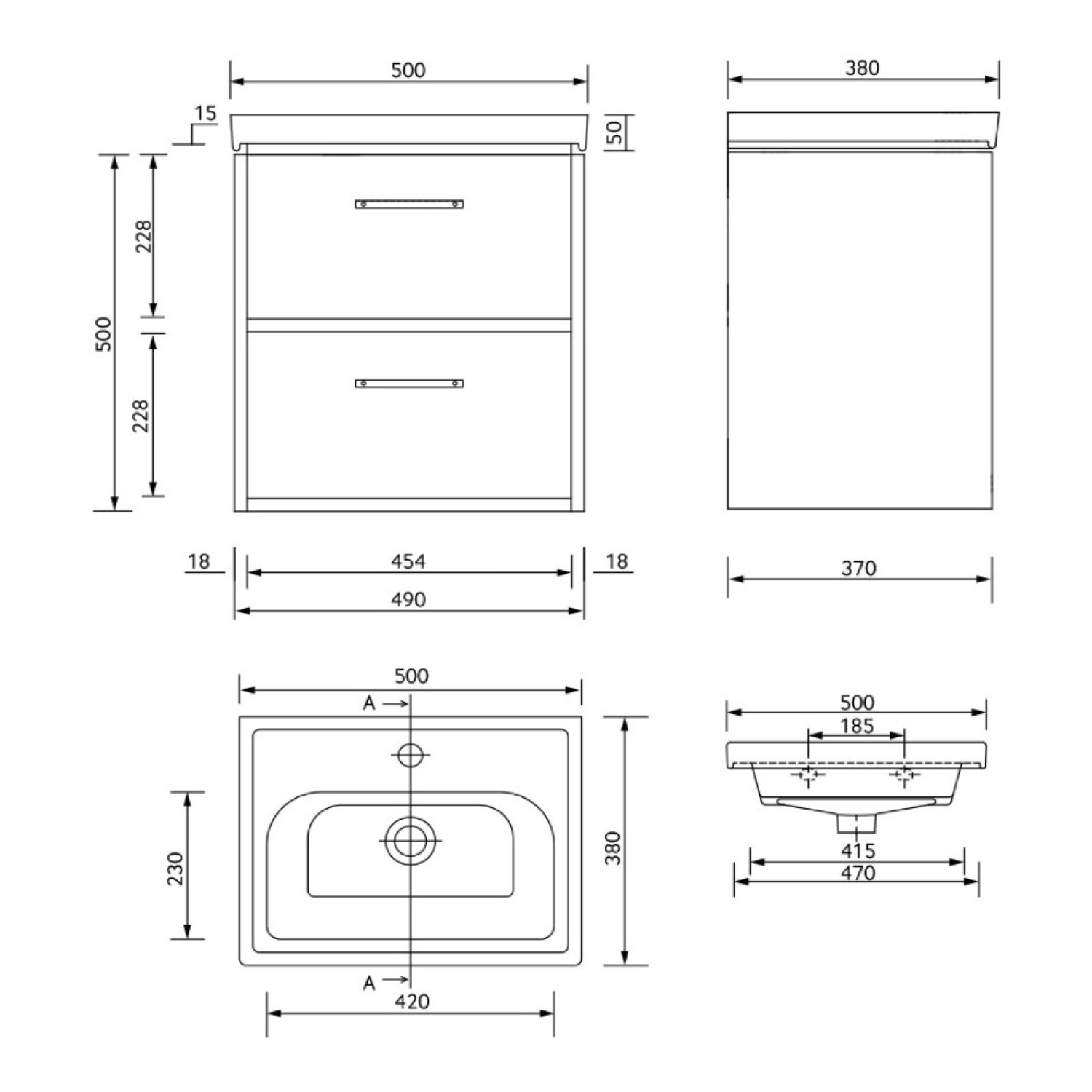 - Two Drawer Wall Hung Unit – Drawers are metal box soft closing