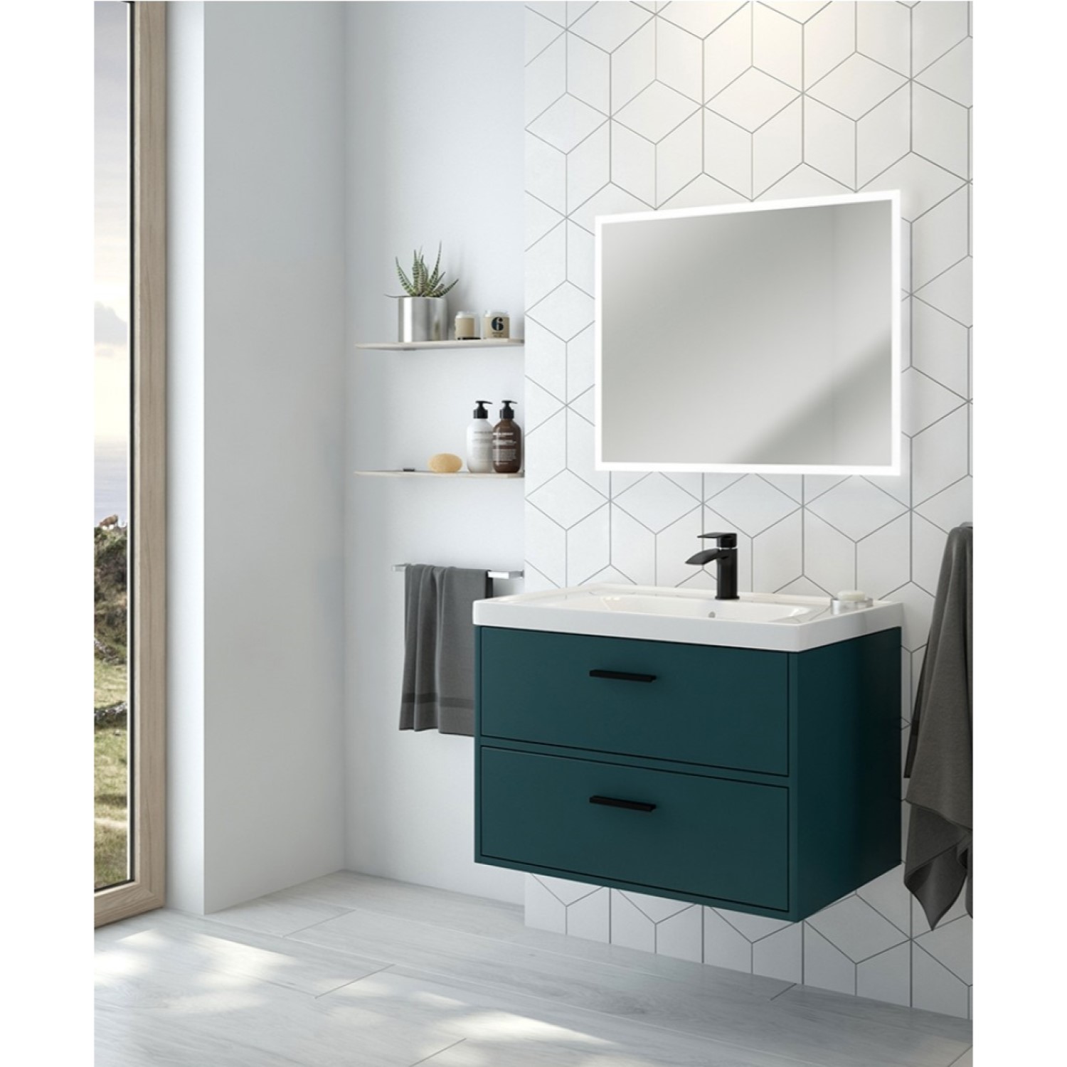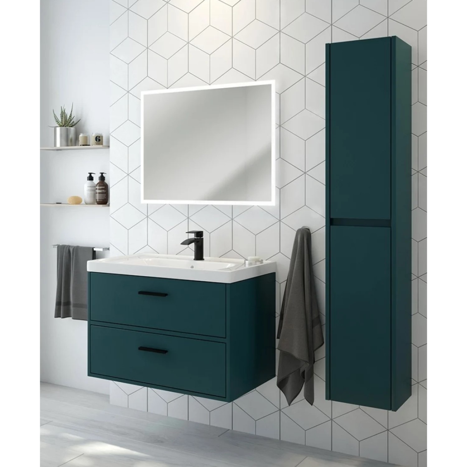 FINLAND Ocean Blue Matt 80cm Wall Hung Vanity Unit – Matt Black Handle